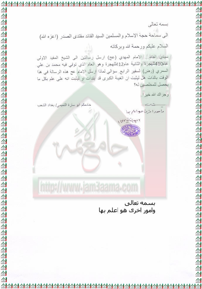 رساله الامام المهدي عجل الله فرجه الى شيعته منتديات يا حسين
